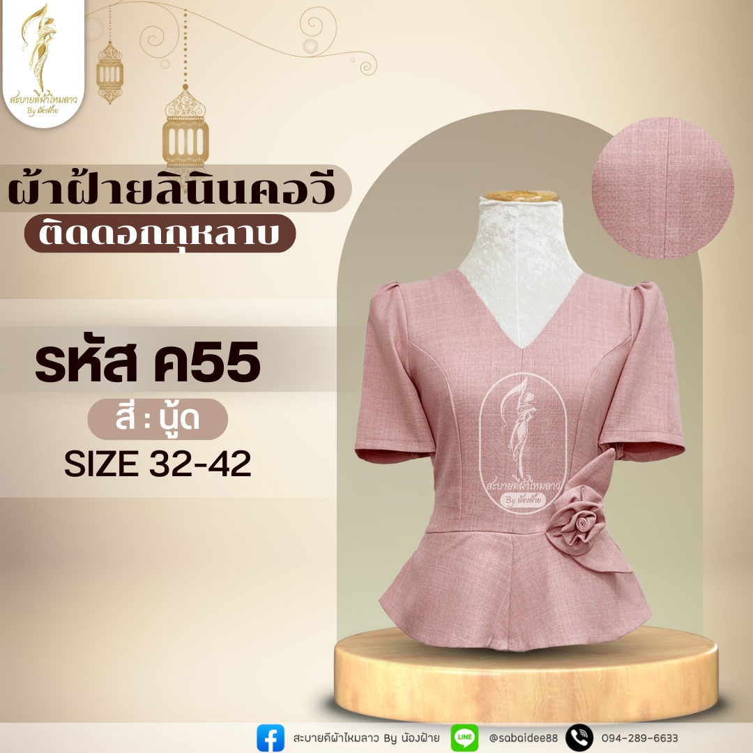 ผ้าฝ้ายลินินคอไทบรมแขนพองผ้าฝ้ายลินินคอไทบรมแขนพอง