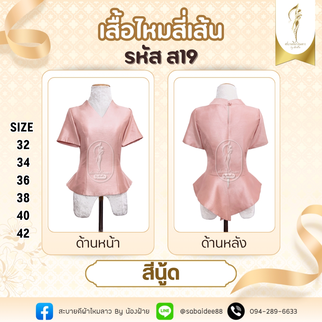 เสื้อไหมสี่เส้นคอวีแขนสั้นไหมสี่เส้นคอวีแขนสั้น