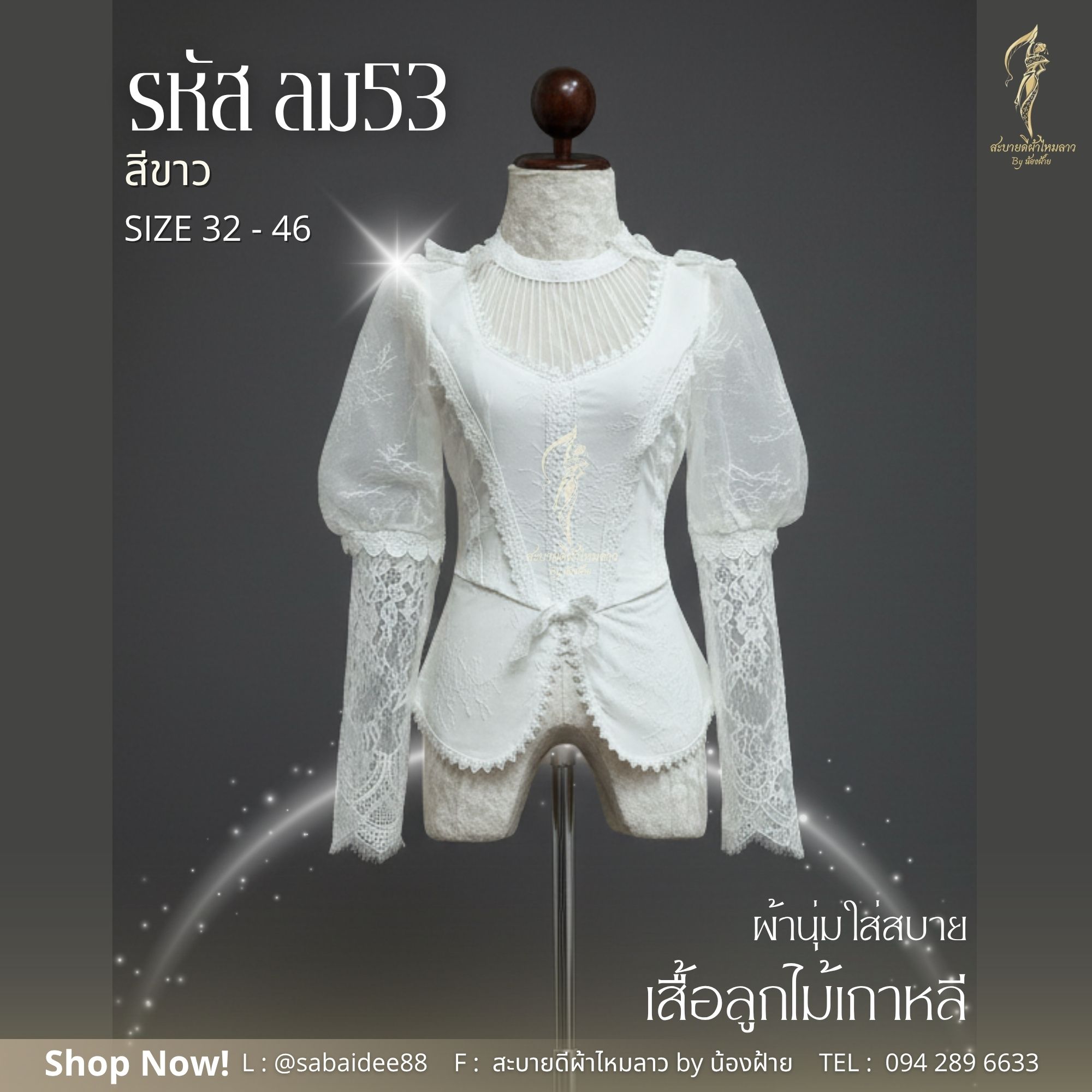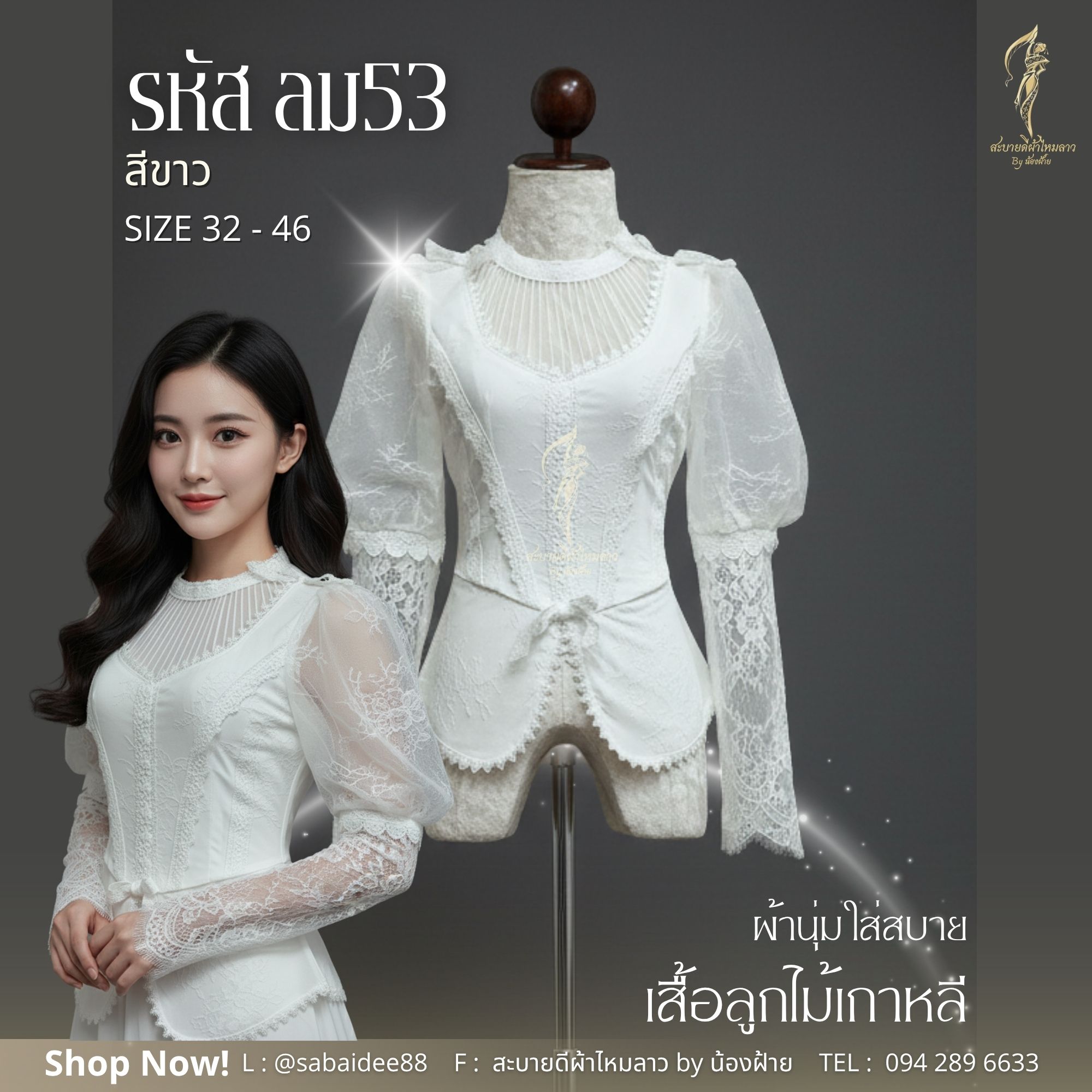 เสื้อลูกไม้เกาหลี สีขาว ผ้านุ่ม ใส่สบาย ไม่คัน